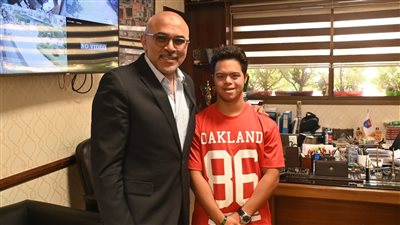 استقبل المستشار محمد الدمرداش رئيس نادى الزهور البطل المصرى محمد الحسيني لاعب نادى الزهور للقدرات الخاصة في السباحة بعد نجاحه