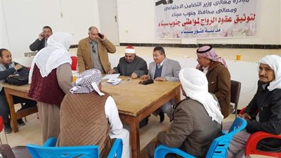 شهد مبروك الغمرينى، رئيس مركز ومدينة طور سيناء ، اليوم الأحد، توثيق حالات زواج ابناء البدو بقرية الوادى التابعة لمدينة طور سيناء .