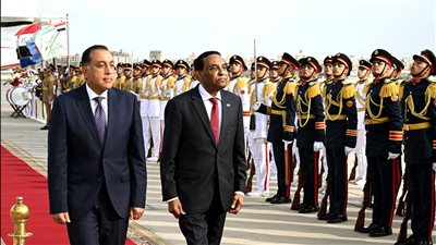 استقبل صباح اليوم، الدكتور مصطفى مدبولي، رئيس مجلس الوزراء، بمطار القاهرة الدولي، الدكتور كامل الطيب إدريس، رئيس الوزراء