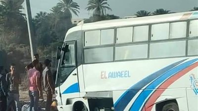 إصابة 28 عاملا في حادث تصادم سيارة نقل بأتوبيس على الطريق السويس (صور)