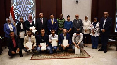 قام الدكتور أشرف صبحي وزير الشباب والرياضة، بتسليم المنح المالية للشباب أصحاب المشروعات الصغيرة، بحضور اللواء محمد الزملوط