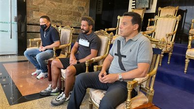 عقد الفرنسي باتريس كارتيرون المدير الفني للفريق الأول لكرة القدم بنادي الزمالك، جلسة مع اللاعبين قبل انطلاق تدريب