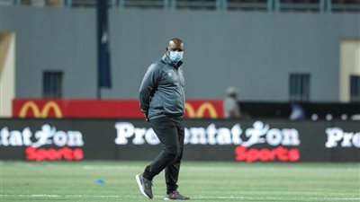 عاين الجنوب إفريقي بيتسو موسيماني المدير الفني للنادي الأهلي، أرضية ملعب بتروسبورت قبل دقائق من انطلاق مباراة المارد.