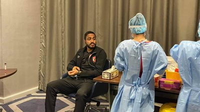 أجرت بعثة الفريق الأول لكرة القدم بالنادي الأهلي، مسحة طبية فور وصولها إلى فندق الإقامة في قطر قبل الدخول