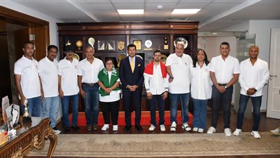 ألتقي وزير الشباب والرياضة الدكتور أشرف صبحي، السباح خالد شلبي عابر المانش بذراع واحده، والسباحين الستة