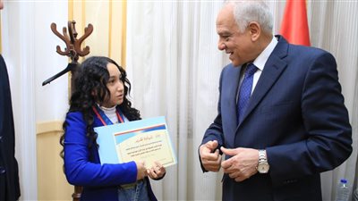 استقبل اللواء أحمد راشد محافظ الجيزة الطالبة حنين رمضان سمير بالصف الاول الثانوى بمدرسة الشهيد العقيد احمد