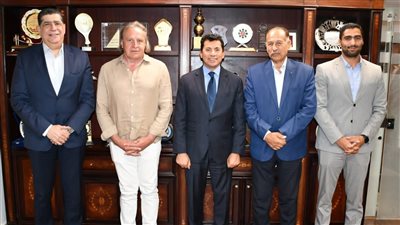 التقي الدكتور أشرف صبحي وزير الشباب والرياضة، السيد- Harald Hoefer المدير الإقليمي لشركة بوما العالمية، بمقر الوزارة