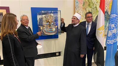 شهد مقر الأمم المتحدة في فيينا مراسم تسليم نسخة طبق الأصل من قناع توت عنخ أمون ، إهداء من مصر إلى المقر الأمم،