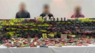 تمكنت الأجهزة الأمنية بوزارة الداخلية، من ضبط كمية من الألعاب النارية بحوزة 3 أشخاص بالمنيا بقصد الإتجار.