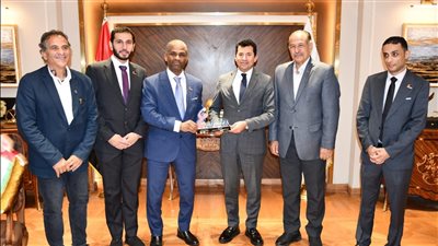 التقي الدكتور اشرف صبحي، وزير الشباب والرياضة، بالاستاذ محمد الامين، رئيس الاتحاد المصري لكرة اليد،،