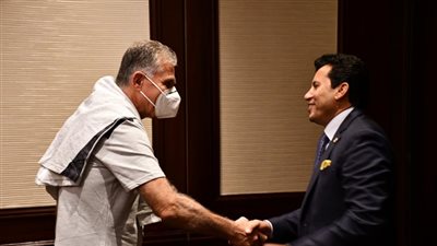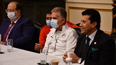 التقي الدكتور أشرف صبحي وزير الشباب والرياضة مع الجهاز الفني والاداري لمنتخب مصر بقيادة البرتغالي كارلوس كيروش،