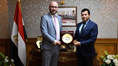 التقي الدكتور أشرف صبحي، وزير الشباب والرياضة، ديرك كونسه المدير الاقليمي لمؤسسة "فريدريش ناومان" بالشرق الأوسط