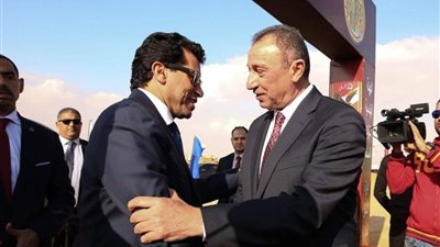 تبادل الدكتور أشرف صبحي وزير الشباب والرياضة والكابتن محمود الخطيب رئيس مجلس إدارة الأهلي، والكابتن حسين لبيب.