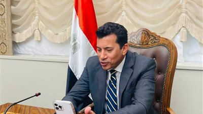 هاني أمان يسلم درع بطولة الجمهورية للشركات الى رئيس الاتحاد الرياضي للشركات خلال فعاليات افتتاح البطولة الـ 56