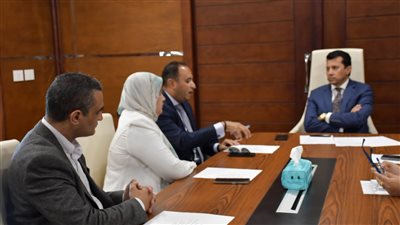 وزير الشباب والرباضة يهنىء إبراهيم أنور السادات أحد نوابغ مسابقة إبداع