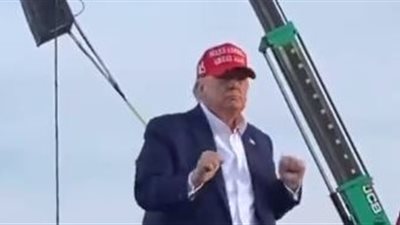 تداول رواد مواقع التواصل الاجتماعي فيديو للرئيس الأمريكي السابق، دونالد ترامب، وهو يرقص مجددا على أنغام الموسيقى أمام أنصاره،