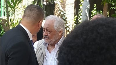 توافد عدد كبير من الوسط الفني على تقديم واجب العزاء في زوجة الفنان خالد زكي في مسجد الشرطة بمدينة الشيخ زايد.