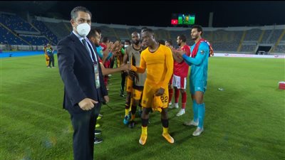 أقاموا لاعبو الفريق الأول لكرة القدم بالنادي الأهلي ممرا شرفيا للاعبي كايزر تشيفز أثناء صعودهم إلى المنصة للحصول