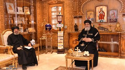 استقبل البابا تواضروس الثاني في المقر البابوي بالقاهرة، اليوم السبت، نيافة الأنبا أنجيلوس الأسقف العام لقطاع كنائس شبرا
