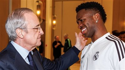 حرص فلورنتينو بيريز رئيس نادي ريال مدريد على الاجتماع بلاعبي الفريق قبل المباراة المرتقبة أمام الأهلي الت
