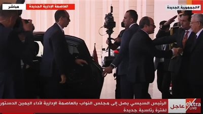 استقبل المستشار حنفي جبالي، ووكيلي المجلس، الرئيس عبدالفتاح السيسي عند وصوله لمقر مجلس النواب بالعاصمة الإدارية، ل