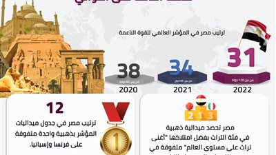 نشر مركز المعلومات ودعم اتخاذ القرار بمجلس الوزراء إنفوجراف جديد بعنوان "مصر تتألق في السنة الثالثة على التوالي في المؤشر العالمي للقوة الناعمة