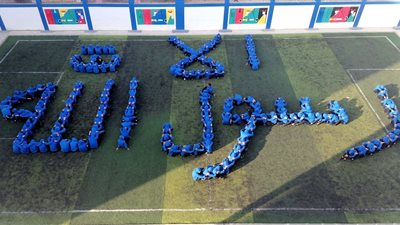 حرص عدد من طلاب مدرسة بديرب نجم في الشرقية، على تشكيل عبارة "إلا رسول الله" بأجسادهم، للرد على الإساءة للنبى محمد صلى الله عليه وسلم.