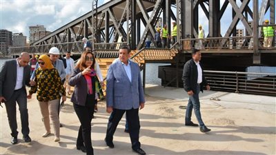 تفقد اللواء هشام آمنة وزير التنمية المحلية والدكتورة منال عوض محافظ دمياط أعمال تطوير كوبرى دمياط التاريخى جسر الحضارة
