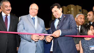 هد أشرف صبحى وزير الشباب والرياضة يرافقه اللواء خالد عبد العال محافظ القاهرة ،مساء اليوم الثلاثاء، نهائى دورى مراكز الشباب لكرة القدم...