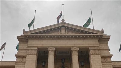 نكست جامعة القاهرة الأعلام على مبنى القبة بداية من يوم الجمعة 13 مايو تنفيذًا لقرار رئاسة الجمهورية بإعلان حالة الحداد