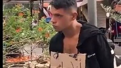 أقدم عدد من الشباب اللبناني على معاقبة لص دراجات قبضوا عليه بطريقة تكون عبرة لغيره من اللصوص، حيث قاموا بتعليق لافته على رقبته.