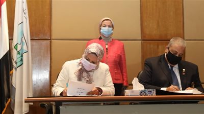 شهدت الدكتورة هالة السعيد وزيرة التخطيط والتنمية الاقتصادية والدكتورة ياسمين فؤاد وزيرة البيئة، واللواء خيرت بركات رئيس.