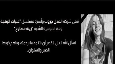 نعى صناع مسلسل عتبات البهجة بطولة النجم يحيى الفخرانى، المنوتيرة الشابة زينة مطاوع التي رحلت عن عالمنا