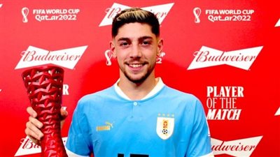 فاز فالفيردي، لاعب منتخب الأوروجواى، بجائزة أفضل لاعب فى مباراة أوروجواى وكورويا الجنوبية،