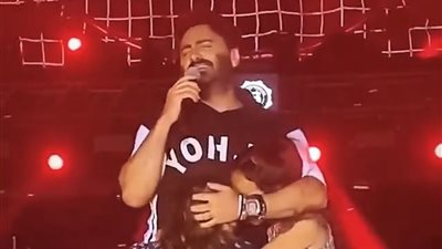 فوجئ الفنان تامر حسني بابنتيه تصعدان على المسرح خلال إحدى حفلاته، وخلال غناءه أغنية"بحبك"وتحتضاناه