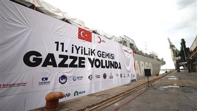 انطلقت من ميناء مرسين جنوبي تركيا، سفينة جديدة متجهة إلى مصر وعلى متنها مساعدات إنسانية مخصصة لسكان قطاع غزة