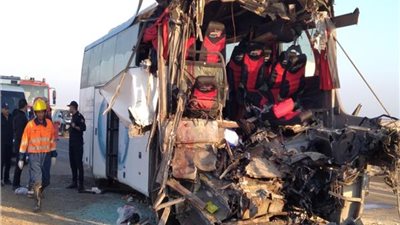 أصيب 24 شخصًا في حادث تصادم أتوبيس مع سيارة نقل على طريق مصر - الإسكندرية الزراعي السريع أمام مفارق المنصورة