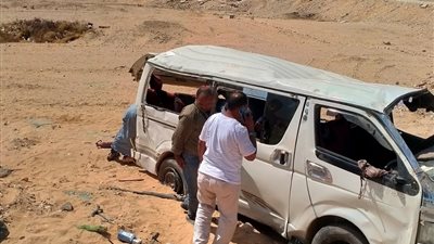 لقي عاملان مصرعهما، اليوم الاثنين، وأصيب 26 آخرين، بينهم 6 سيدات، في حادث انقلاب سيارة ربع نقل بطريق الصعيد الصحراوي الغربي، بجوار واحة دير الأنبا أنطونيوس بمركز المنيا