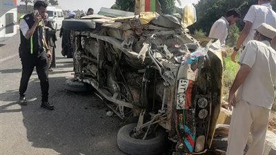 إصابة 10 أشخاص إثر حادث انقلاب ميكروباص على صحراوي قنا