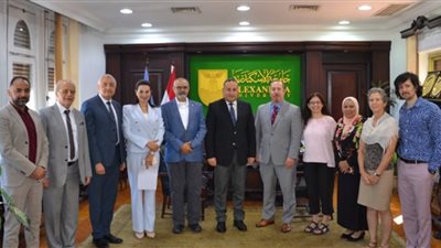 أستقبل الدكتور عبد العزيز قنصوة، رئيس جامعة الإسكندرية، السيد دافيد سادولى الملحق الثقافي الفرنسي بالقاهرة والوفد المرافق له،