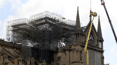 تمت إزالة السقالات المنصهرة جزئيا التي كانت تعلو كاتدرائية نوتردام في باريس، بعدما تضررت بشدة جراء حريق مدمر العام الماضي.