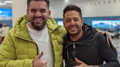 التقى الفنان محمد حماقي، بالفنان الإمارتي حسين الجسمي، أثناء تواجدهما داخل أحد المطارات.