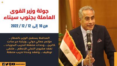 قام وزير القوى العاملة حسن شحاتة، اليوم الاحد، يرافقه اللواء خالد متولي نيابة عن اللواء خالد فودة محافظ جنوب سيناء، واشرف