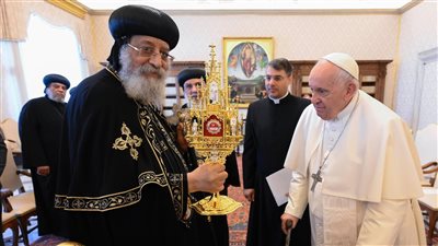 التقى البابا تواضروس الثاني بابا الإسكندرية بطريرك الكرازة المرقسية، مع البابا فرنسيس بابا الفاتيكان، خلال اجتماع وفدَي الكنيستَيْن القبطية