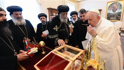 أهدى قداسة البابا فرنسيس، قداسة البابا تواضروس، بابا الإسكندرية وبطريرك الكرازة المرقسية، عقب لقاءهما صباح اليوم جزءًا من رفات الشهيدة