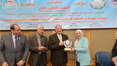 كرم اللواء عصام سعد محافظ أسيوط، بمكتبه بديوان عام المحافظة، الدكتور ريهام المليجي عميد كلية التربية لل