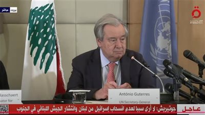 أكد أنطونيو جوتيريش، الأمين العام للأمم المتحدة، أن القوات الإسرائيلية ستغادر لبنان، مشيرًا إلى أنه متيقن من ذلك، وفقًا لما ذكرته قناة القاهرة الإخبارية.