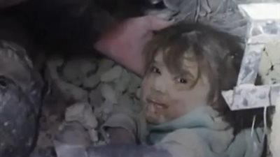 أظهر مقطع فيديو لحظة انتشال طفلة على قيد الحياة من بين الأنقاض في منطقة جندريس بريف حلب بعد الزلزال المدمر.