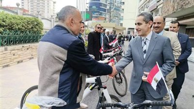 قامت وزارة الشباب والرياضة بتسليم مجموعة من أسر الشهداء والضحايا دراجات مبادرة دراجتك صحتك بالتنسيق
