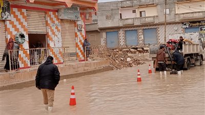 تنفيذا لتوجيهات اللواء خالد شعيب محافظ مطروح بسرعة التعامل مع تجمعات مياه الأمطار بنطاق المدينة..